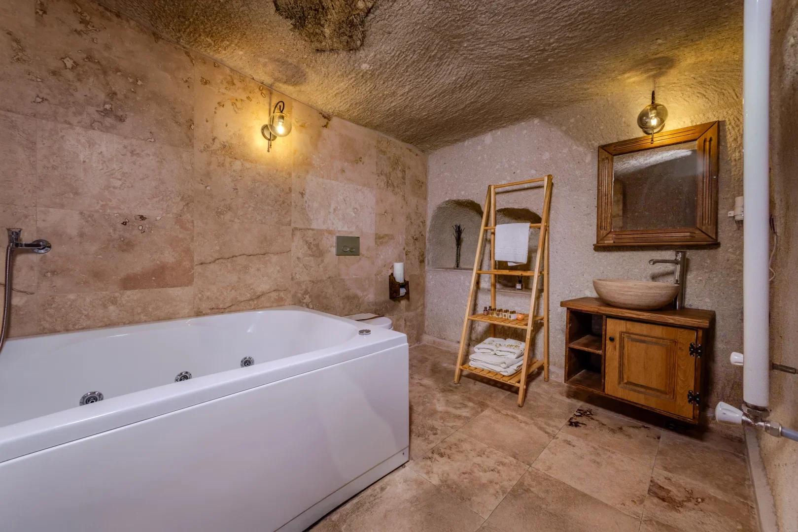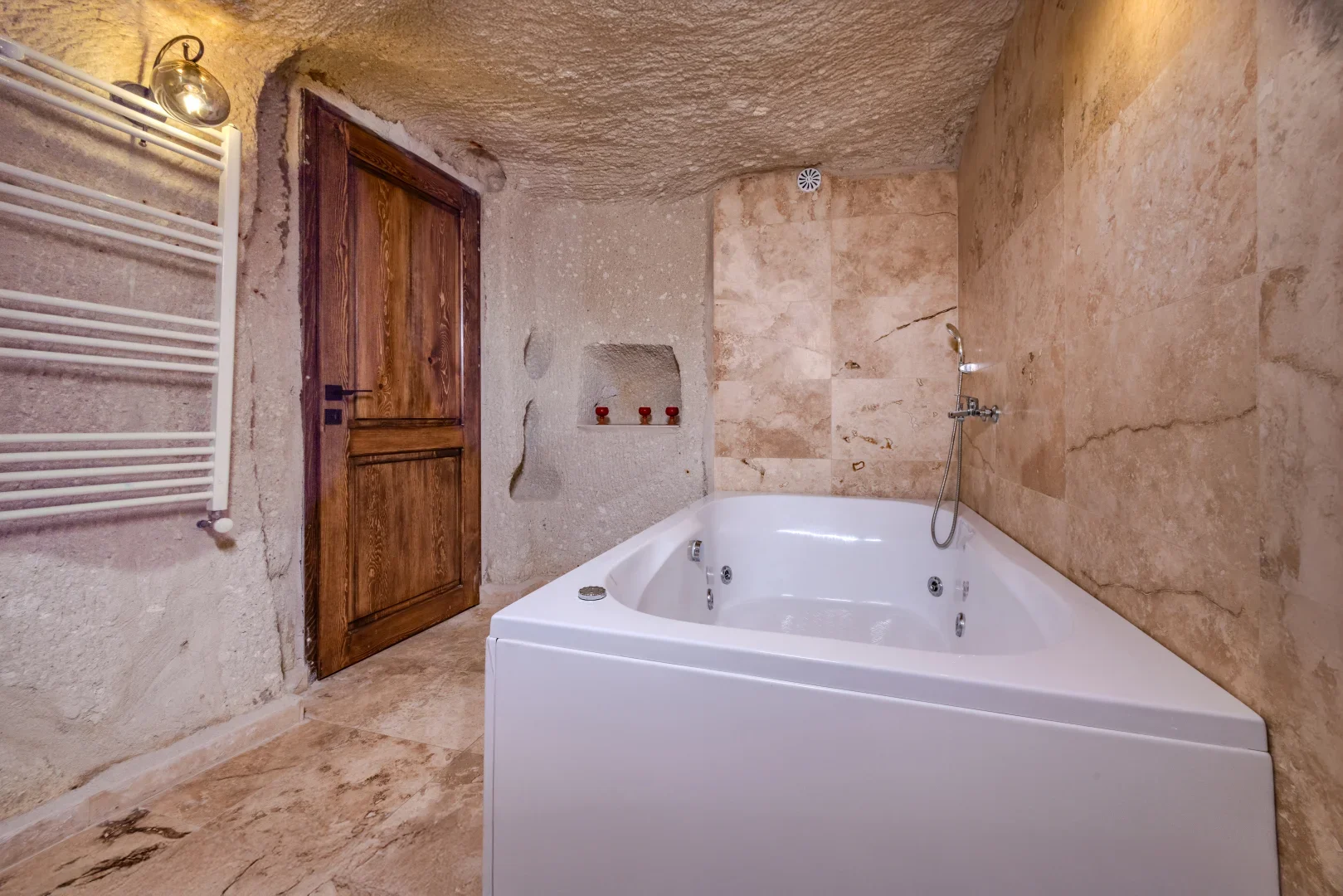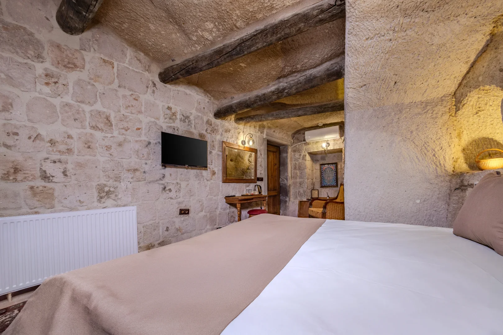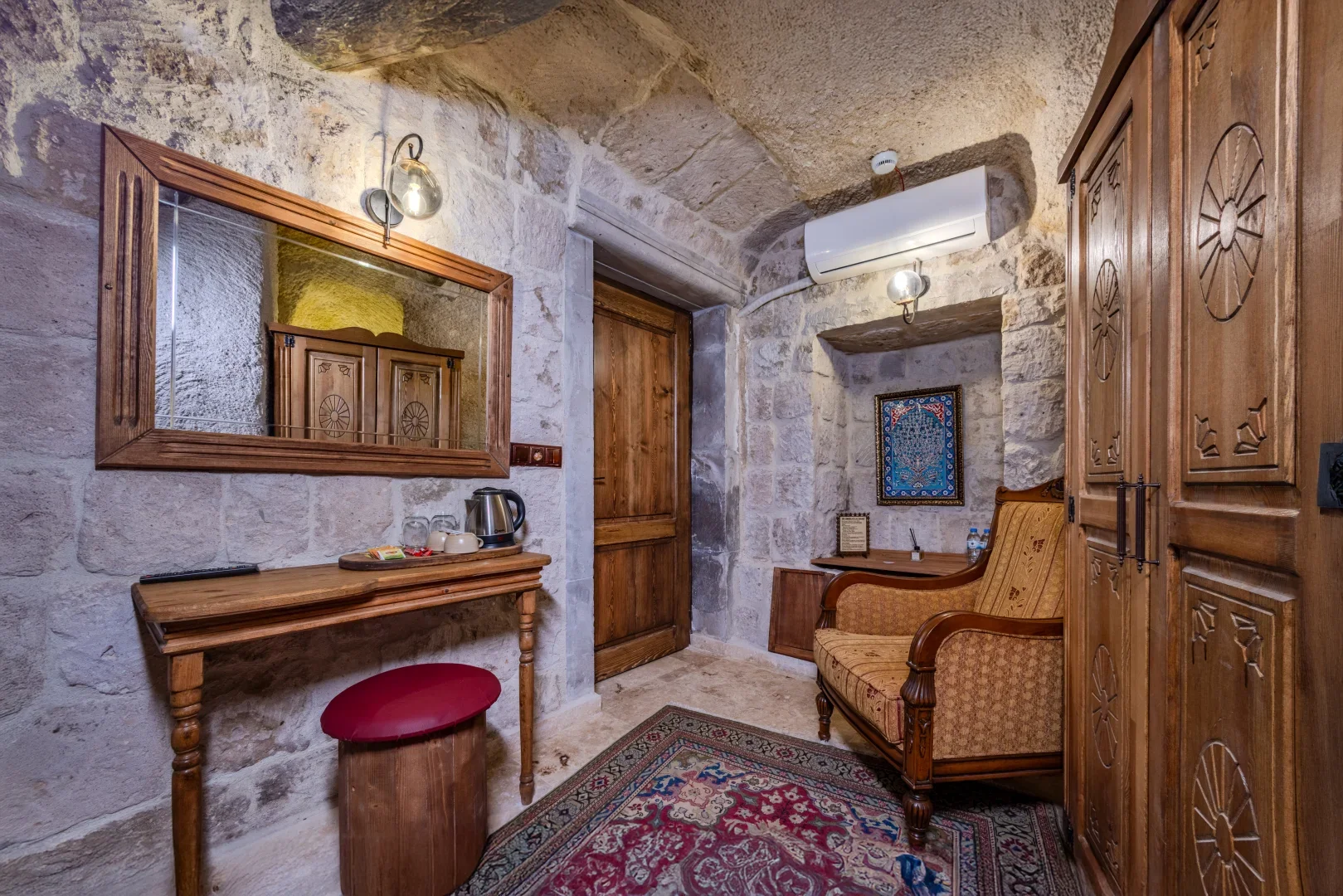 The room blends modern amenities with traditional comfort, ensuring a relaxing stay. After a day of sightseeing, enjoy a peaceful evening by the fireplace or unwind in the soothing Jacuzzi. Room 101 offers a perfect balance of luxury and comfort, providing a memorable escape in the heart of Cappadocia.