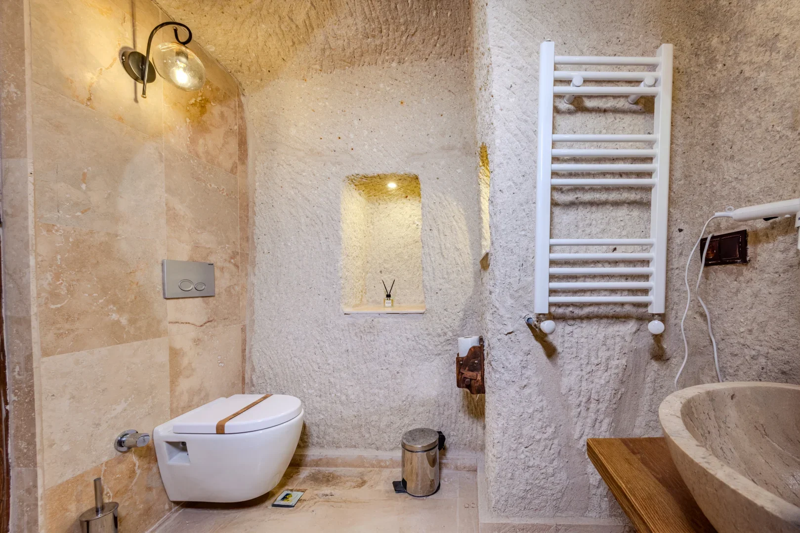 Whether you're soaking in the Jacuzzi, enjoying the warmth of the fireplace, or rejuvenating in the hammam, Room 202 provides a luxurious and spacious environment to relax and unwind. Its size and amenities make it the perfect choice for guests seeking comfort, luxury, and serenity in the heart of Cappadocia.